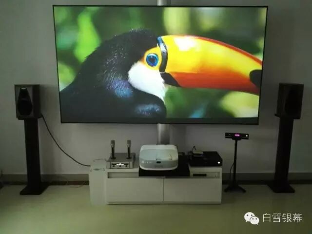 如果是编织材料,音箱可以放在距离幕布更近的地方,而并不需要均衡器。